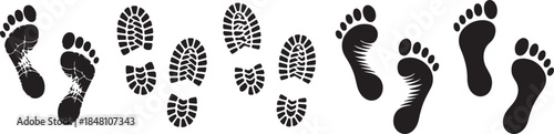 Set of human footprints icon. Foot imprint, footsteps icon collection. Human footprints silhouette