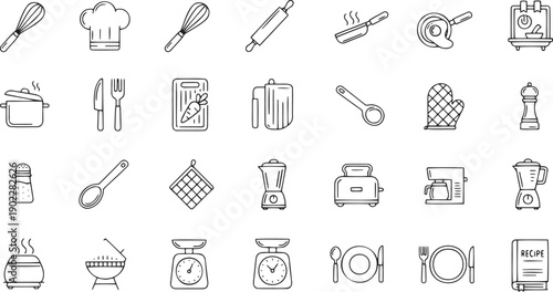 set of kitchen utensils Minimalist Flat Vector Icons and Graphic Design Elements