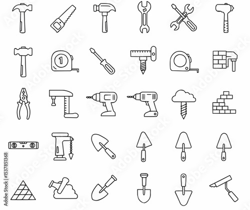 tool, hammer, saw, wrench, screwdriver, tape measure, construction, hand tool, toolbox, repair, equipment, work, building, industry, service, maintenance, carpenter's shop, hand, work tool, carpenter, hardware, craft, project, building trade, instrument, home improvement, build, job, line art, install, fix, improvement, builder, craftsmanship, labor, occupation, trade, assembly, arrangement