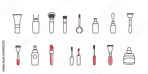 Set of minimalist stroke icons depicting skincare and makeup tools Isolated on white background, background, makeup