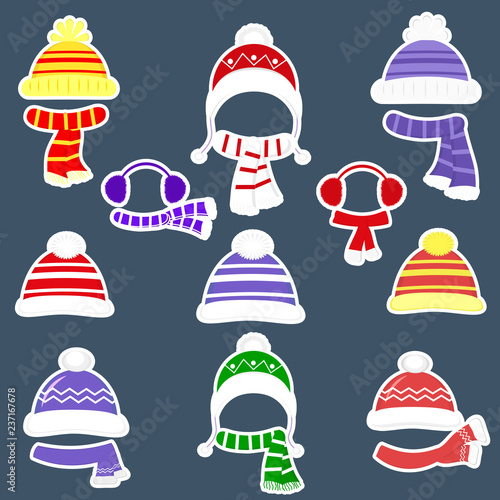 sticker, stroke, winter, hat, vector, children, children, cap, healthy lifestyle, foulard, collection, accessory, outerwear, set, cold, fur, headwear, icon, autumn, background, fashion, cartoon, isolated, pom-pom, earphones, sport, flat, man, woman, boy, girl, head, clothes, striped, white, glove, headdress, weather, headgear, holiday, style, santa, apparel, man, stylish, clothing, design, ski, walk