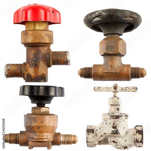 Set of old water valve isolated on a white background.