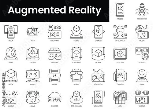 Set of outline augmented reality icons. Minimalist thin linear web icon set. vector illustration.