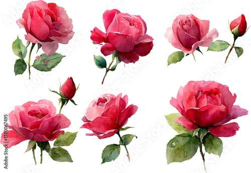 set of pink roses isolated