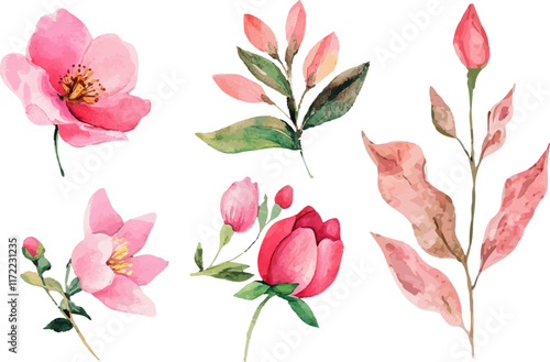 flower, pink, nature, flower, floral, vector, leaf, plant, spring, blossom, pattern, design, illustration, tree branch, bouquet, beauty, art, card, bloom, tulip, summer, magnolia, decoration, rose