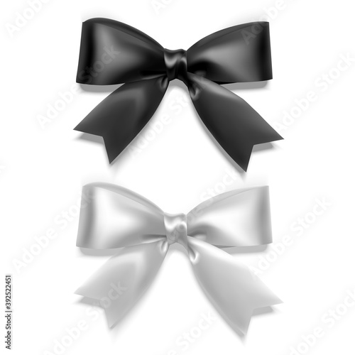 Set of Realistic bows, Ribbon of black and white colors isolated on white background. Vector eps 10 illustration