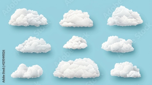 cloud, sky, blue, white, fluffy, nature, weather, air, heaven, cumulus, climate, cloudscape, cotton, soft, light, dream, summer, background, abstract, shape, isolated, element, collection, set, vector, illustration