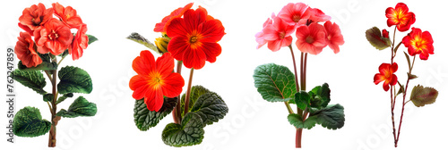 Set of red Primrose flower, isolated on transparent background