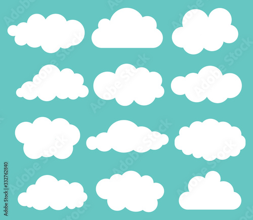 Set of shite sky, clouds. Cloud icon, cloud shape. Set of different clouds. Collection of cloud, shape, label, symbol. Graphic element vector.