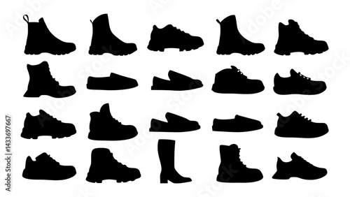 set of shoe silhouette vector on tranparent background