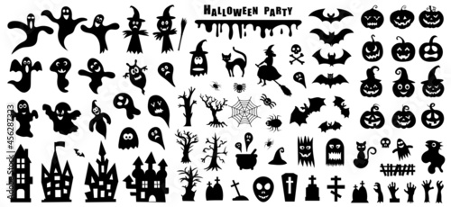 Set of silhouettes of Halloween on a white background. Vector illustration.