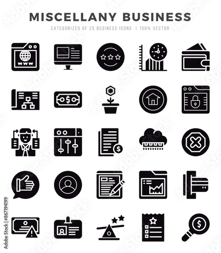 Set of simple Glyph Miscellany Business Icons. Glyph art icons pack.