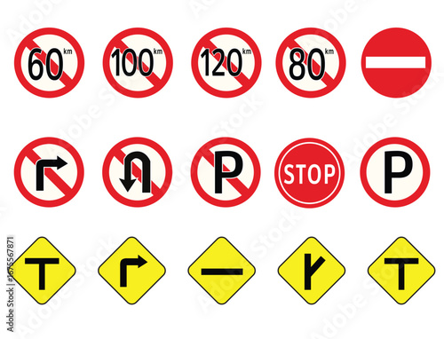 road, traffic, car, signs, icon, circle, maximum, vector, highway, set, information, speed, drive, limit, red, symbol, isolated, illustration, warning, danger, street, transport, safety, background, transportation, kilometre, restriction, number, direction, way, limitation, arrow, black, stop, 120, white, 80, 90, forbidden, 100, caution, 110, regulation, 60, object, design, collection