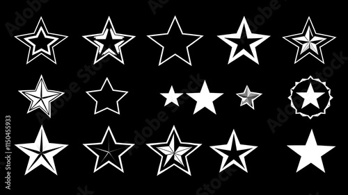 Set of stars icon, star symbol collection, black and white color Generative AI