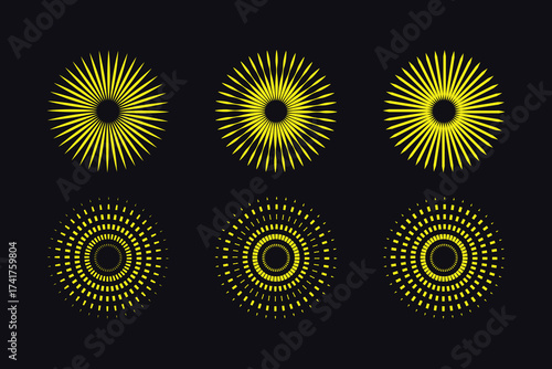 set of Sunburst and starbrust icon. retro and abstract sunburst icon set. sun icon set, Sunrise Icon, vector illustration.