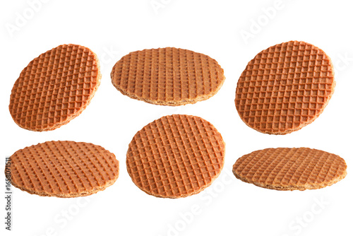 Set of sweet wafers floating in the air isolated on transparent background.