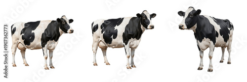 Set of Three Holstein Friesian Dairy Cows Isolated on White Background