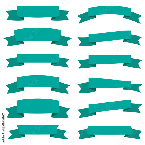 Set of twelve green ribbons and banners for web design. Great design element isolated on white background. Vector illustration.