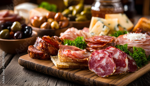 meat, cheese, snack, wooden, board, cutting, deli, party, platter, assortment, variety, closeup, charcuterie, deli, food, catering, entertaining, epicure, selection, sliced, cured, salami, prosciutto, finger, food, arrangement, serving, rustic, table, festive, celebration, buffet, tasting, antipasto, widener, display, culinary, eatery