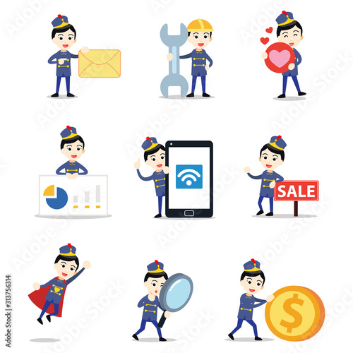 Set of woman character in a marching band parade concert.