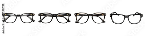 Set or collection of black eyeglasses frames isolated on transparent background