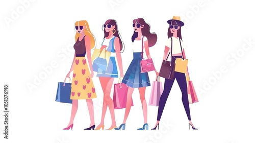 Several Fashionable Young Ladies Holding Shopping Bags - a stylish and elegant visual. The group of fashionable young ladies with shopping bags in their hands exudes charm and sophistication.