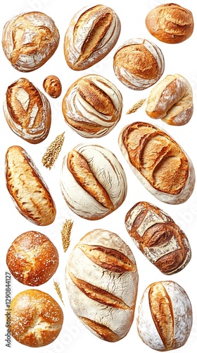 bread, baked, food, loaf, pastry, dough, wheat, grain, artisan, rustic, fresh, crusty, sourdough, white, brown, gold, texture, bakery, breakfast, lunch, dinner, snack, meal, carbohydrate, nourishment, delicious, whole, isolated, studio, overhead, baker, cooking, gastronomy, culinary, ingredient, appetising, closeup, assortment, variety, tasty