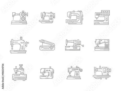 Sewing machines flat line vector icons set