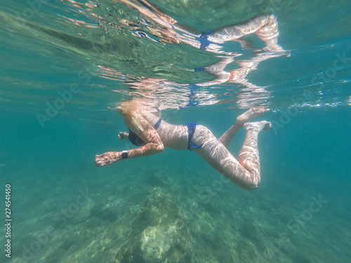 Sexy woman body in crystal clear Adriatic sea water