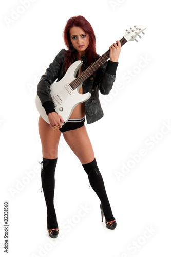 Sexy young female with guitar isolated