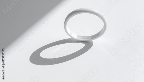 Shadow play of a white ring minimalist studio setting close-up photography soft lighting abstract concept