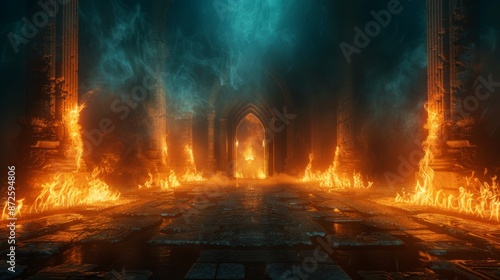 Shadowy void with blazing fire, ceremonial night of ancient fables, digital art style
