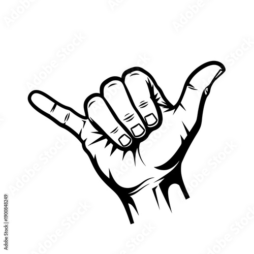 icon, illustration, hand, finger, thumb, little finger, gesture, communication, greeting, aloha, hawaii, cool, ok, peace, positive, casual attire, informal, waving, sign language, body language, art, drawing, outline, black-and-white, monochrome, isolated, white background, vector, graphic, symbol, representation, emblem, iconic, trendy, popular, spirit, freedom, relaxation, vacation, summer, island