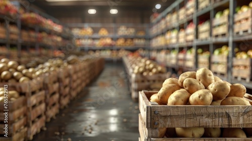 potato, agriculture, food industry, storage, fresh produce, wooden crate, nourishment, distribution, harvest, market, wholesale, rustic, freshness, grocery, food supply, agribusiness, agronomy, shipping, pantry, seasonal, organic, farming, industrial