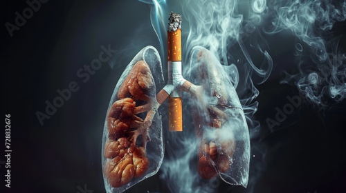 Shape of lungs and cigarettes on black background