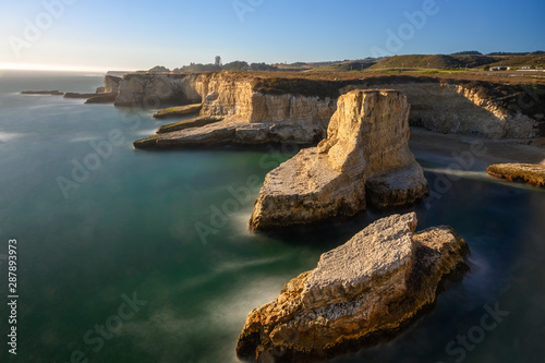 sea, coast, landscape, beach, water, ocean, nature, rock, cliff, blue, sky, travel, rock, island, cliff, coastline, summer, shore, sunset, stone, beautiful, sun, horizon, santa cruz, tour tourism