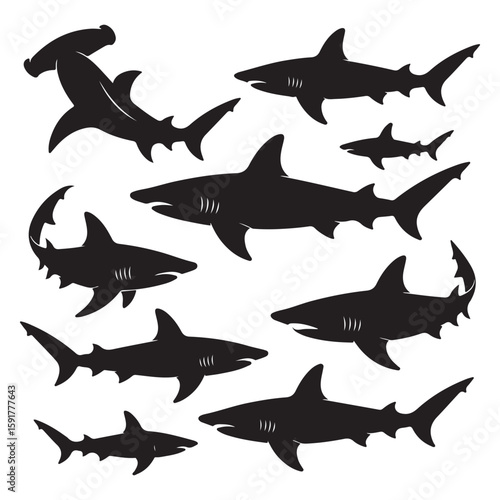 Shark Silhouette Vector Pack – Ocean Predator Clipart Set