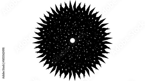 Sharp spiked circular radial abstract shape in black silhouette for logos, tattoos, or graphic design overlays