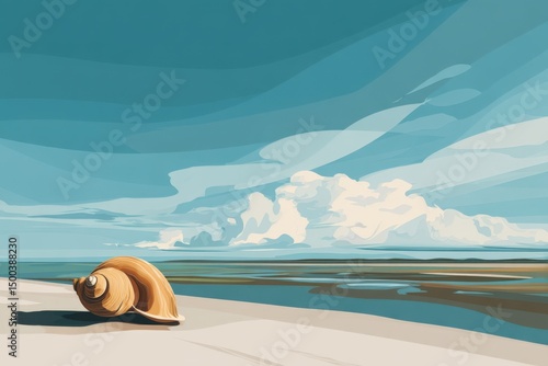 shell, beach, ocean, wave, sand, sky, nature, calmness, coastal, landscape, summer, scenery, relaxation, marin, environment, horizon, sunlight, blue, water, calm, vacation, beauty, seafood, peaceful, shore, texture, natural, scenic, travel, adventure, exploration, serenity, coastline, marine life, artistic, illustration, design, visual, composition, atmosphere, element, aesthetic, harmony, inspiration