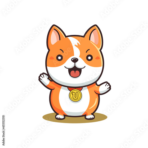 Shiba Inu dog holding gold coin and thumbs up, Illustration, Cartoon PNG