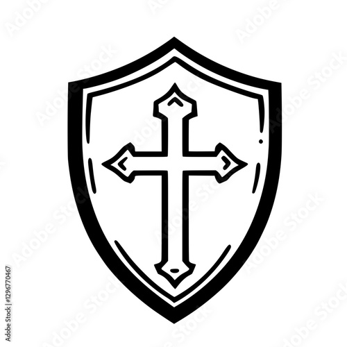 Shield with Cross Icon Representing Protection, Security, and Religious Symbolism
