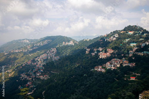 Shimla, the capital city of Himachal Pradesh, India, with housing on a hillside; Shimla, Himachal Pradesh, India
