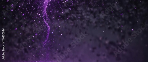 Shimmering purple glitter particles suspended in mid-air over a dark purple gradient , confetti, shimmer, cloudy