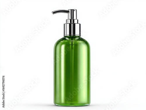 Shiny green liquid soap dispenser pump bottle isolated on white background