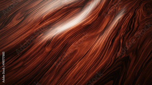 Shiny polished wood texture with a smooth surface and rich dark grain patterns