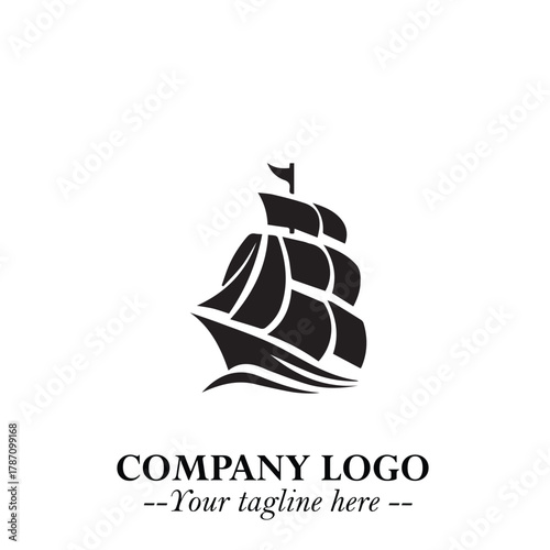 Ship Moving Fast Logo Symbol in Black on the White Background with Modern Maritime Design