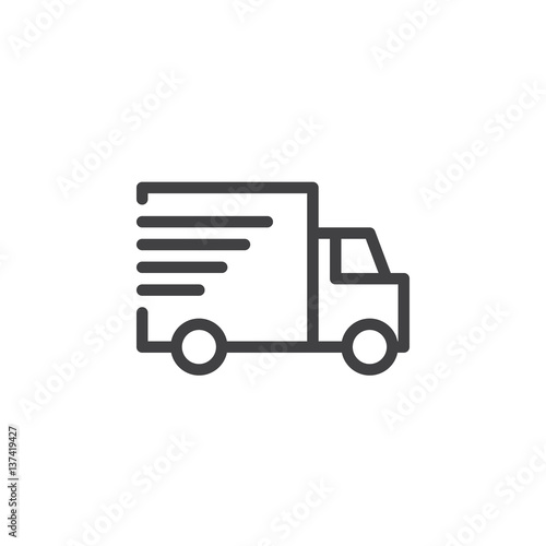 Shipping truck line icon, outline vector sign, linear style pictogram isolated on white. Fast, express delivery symbol, logo illustration