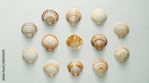 Shooting in the Studio Seashells are laid out in the shape of a square on a light background Shooting from above : Generative AI