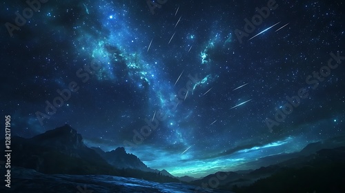 meteor, shower, star, shooting, sky, night, celestial, cosmic, galaxy, space, astronomy, universe, twinkling, fireball, dazzling, radiant, infinite, spectacular, breathtaking, star, nebula, light, abstract, blue, dark, fantasy, bright, cosmos, background, planet, cloud, illustration, deep, moon, science, black, cloud