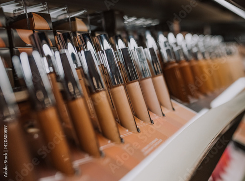 beauty, bottle, browsing, business, caucasian, closeup, colours, complexion, cosmetic, cover, cream, dof, foundation, fun, girl, holiday, indoor, make-up, merchandise, natural, product, season, shade, shop, shopping, skincare, still life, store, tone, youth
